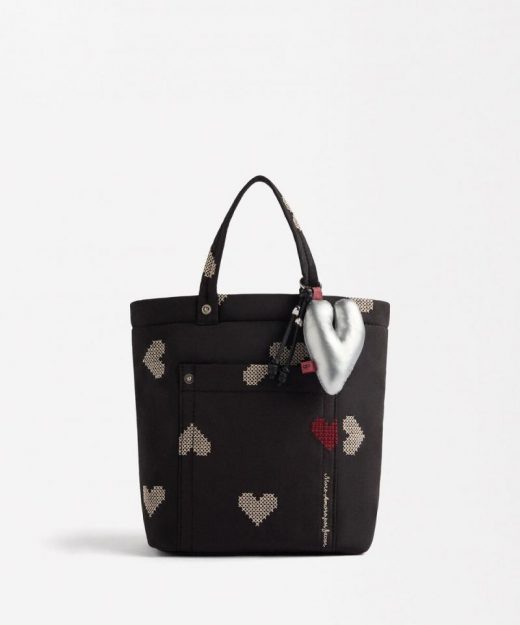 Parfois Nylon | Mujer Bolso tote de nylon bordado corazones