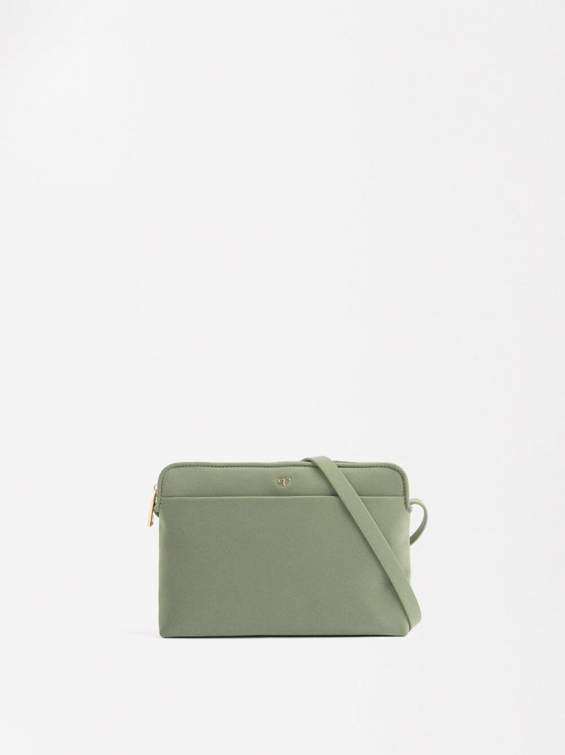 Bolso bandolera rectangular con efecto aterciopelado. Bolsillo exterior. Forro interior. Cierre de cremallera. Asa bandolera fija ajustable.