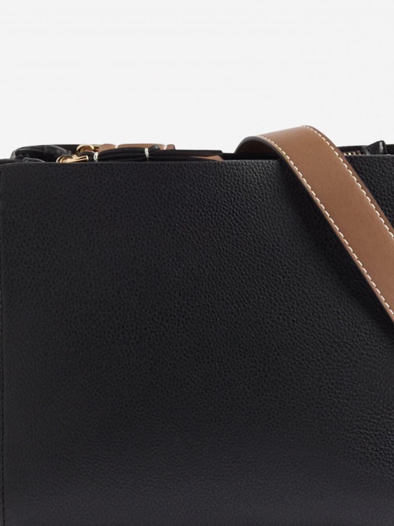 Bolso bandolera everyday con textura. Forro y bolsillo interior. División central con cierre magnético. Compartimentos laterales con cierre de cremallera. Asa ajustable y removible.