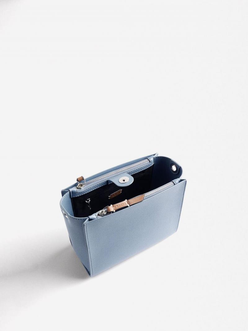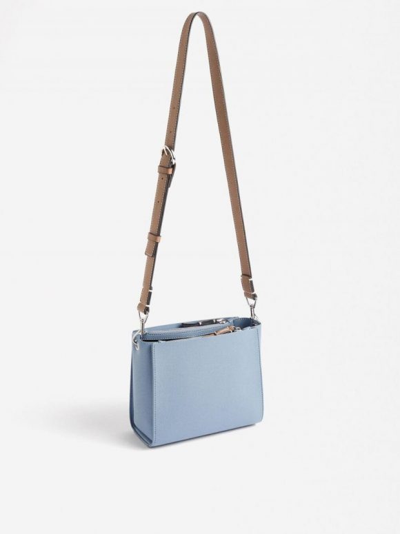 Bolso bandolera everyday con textura. Forro y bolsillo interior. División central con cierre magnético. Compartimentos laterales con cierre de cremallera. Asa ajustable y removible.