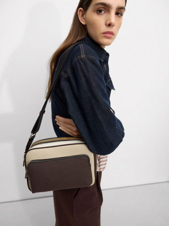 Bolso bandolera patchwork. Cierre de cremallera doble. Forro y bolsillo interior. Bolsillo exterior con cierre de cremallera. Asa fija ajustable.