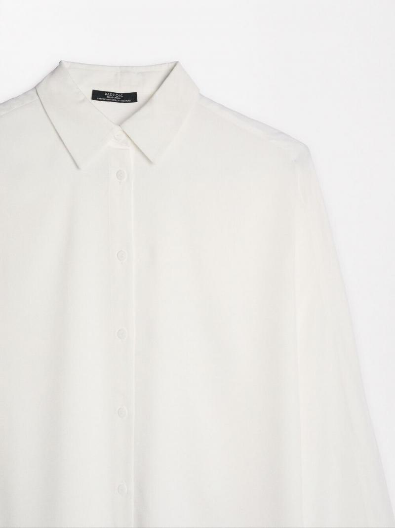 Camisa básica de manga larga. Confeccionada en viscosa. Cuello de solapa. Apertura con botones. La modelo mide 1,73 m y lleva la talla XS-S.