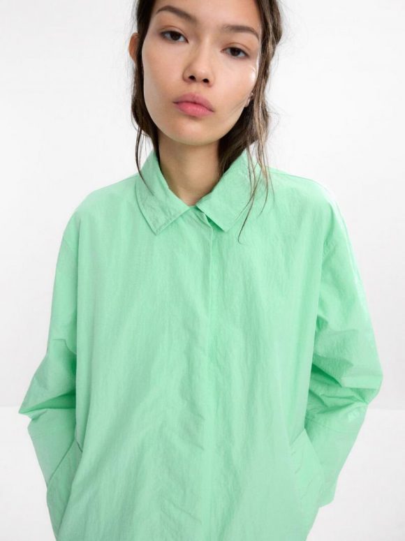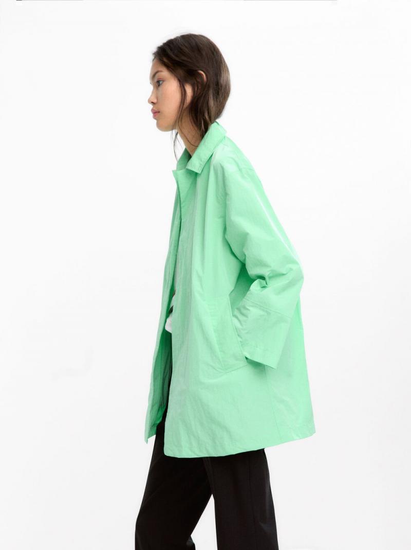 Parka ligera con bolsillos laterales. Cuello de solapa. Manga larga. Cierre oculto. La modelo mide 1.79 m y lleva la talla S.