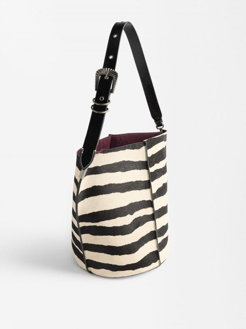 Bolsa de hombro de piel. Colgante removible. Detalle de costura. Forro interior. Asa de hombro ajustable y removible.
