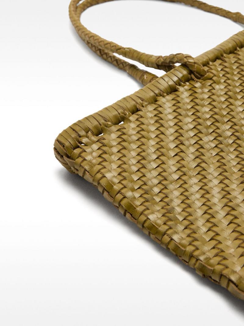 Bolso shopper de piel trenzado de tamaño mediano. Asas de hombro fijas y tubulares. Ideal para quienes aprecian la simplicidad con elegancia. Confeccionado a mano.