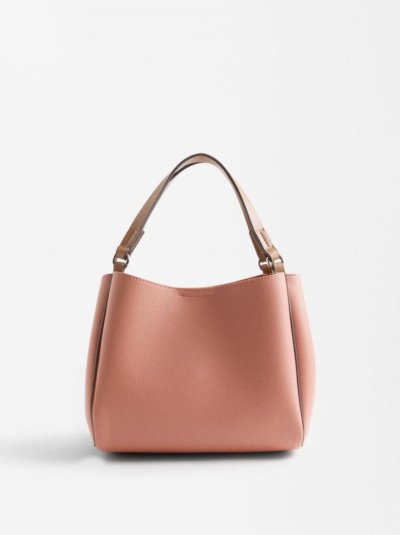 Bolso tote color block con textura. Tres compartimentos; dos con cierre magnético. Compartimento central con forro y bolsillo interior; cierre de cremallera. Asas de mano fijas. Asa bandolera ajustable y removible.