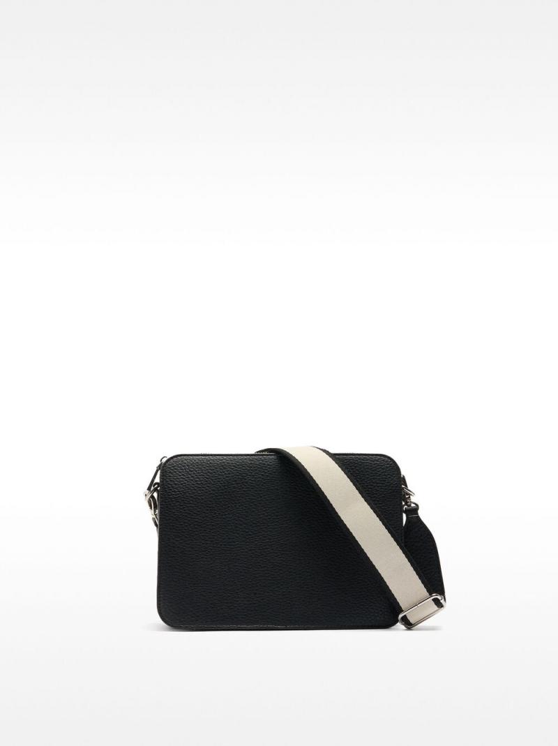 Bolso bandolera estructurado y con textura. Forro interior. Cierre de cremallera. Compartimentos laterales con cierre magnético. Asa bandolera ajustable y removible.