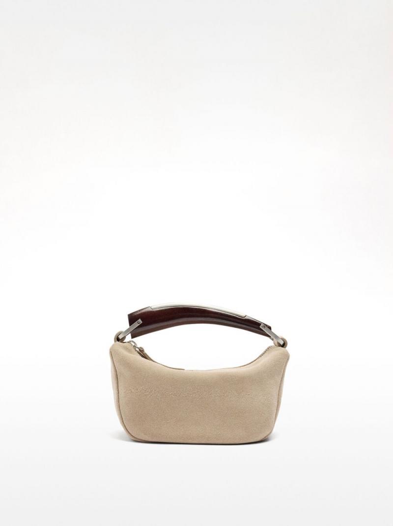 Bolso de mano de piel de ante. Forro interior. Cierre de cremallera. Asa rígida fija.