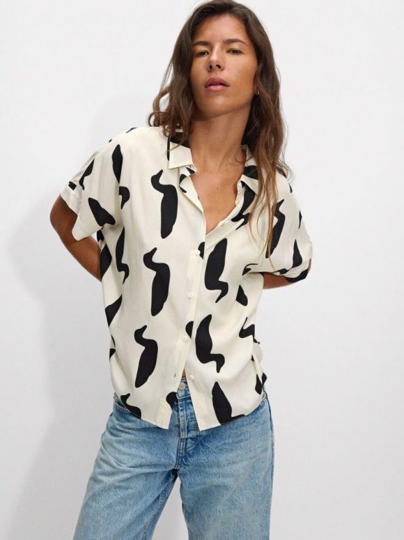 Camisa estampada de manga corta. Confeccionado en viscosa. Cuello de solapa. Cierre con botones ocultos. La modelo mide 1,78 cm y lleva la talla XS-S.