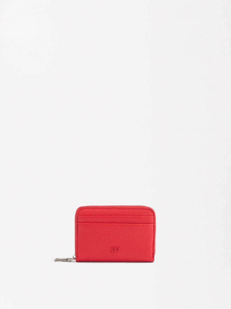 Cartera pequeña con textura. Ranuras para tarjetas. Compartimento para monedas. Cierre de cremallera. Ranuras exteriores para tarjetas.