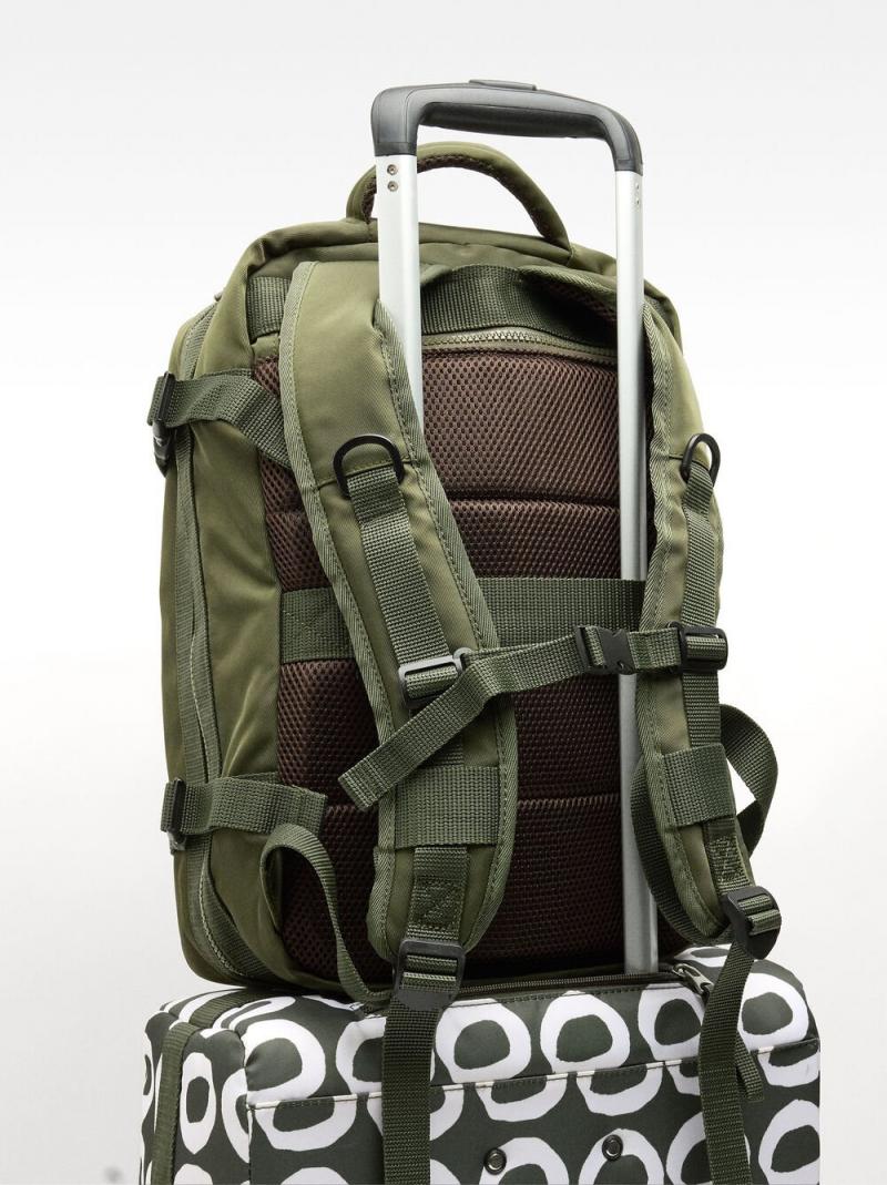 Mochila de cabina de nylon con asa superior y asas ajustables, reforzadas y acolchadas, para hacer que el transporte de la mochila sea más cómodo. Bolsa externa en la parte delantera y una trasera con cierre de cremallera. Compartimento para el portátil.