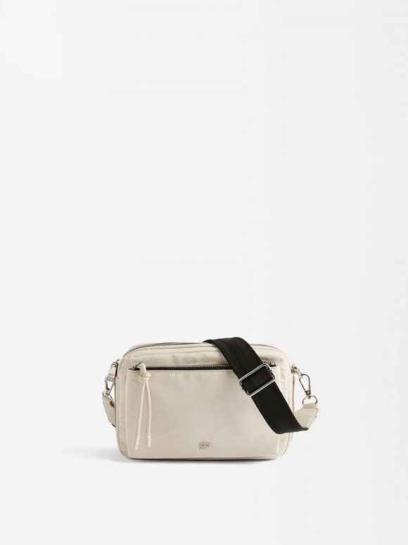 Bolsa cruzada de nylon. Forro y bolsillo interior. Bolsillos exteriores, frontal y posterior. Cierre de cremallera. Asa cruzada ajustable y removible.