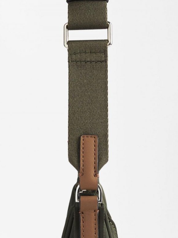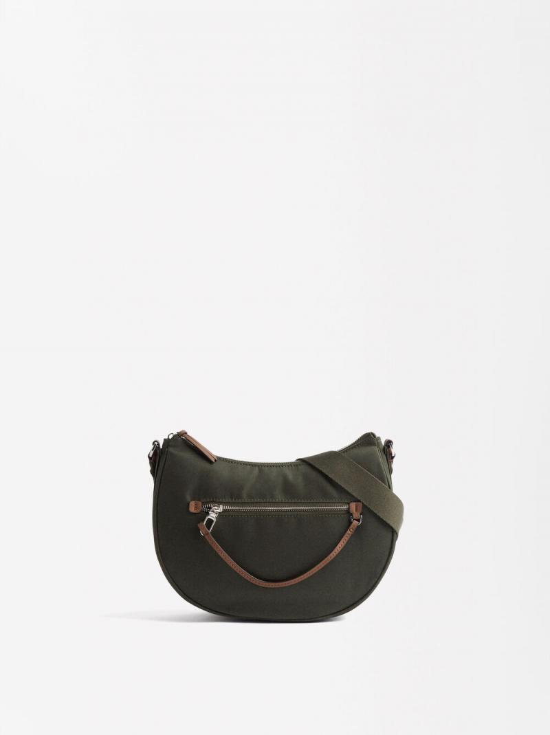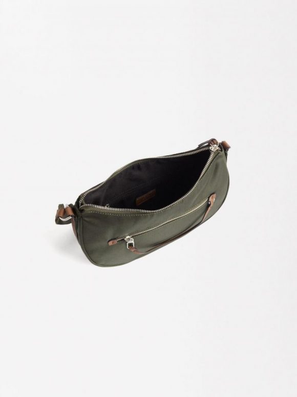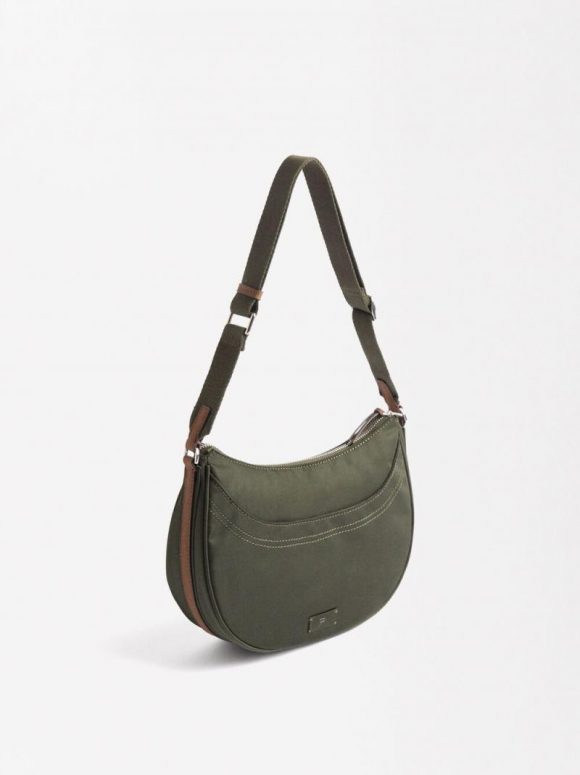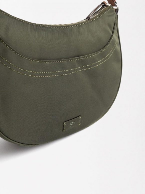 Bolso tipo hobo de nylon. Forro y bolsillo interior. Cierre de cremallera. Bolsillos exteriores frontal y posterior. Asa fija ajustable.
