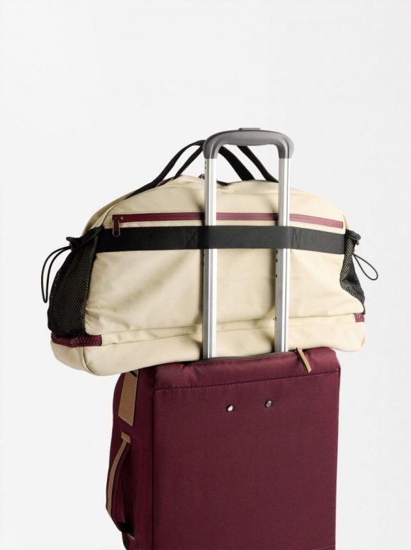 Bolso de viaje de nylon. Forro y bolsillo interior. Compartimento para calzado. Bolsillos exteriores. Cierre de cremallera. Asas de mano fijas. Asa bandolera ajustable y desmontable.