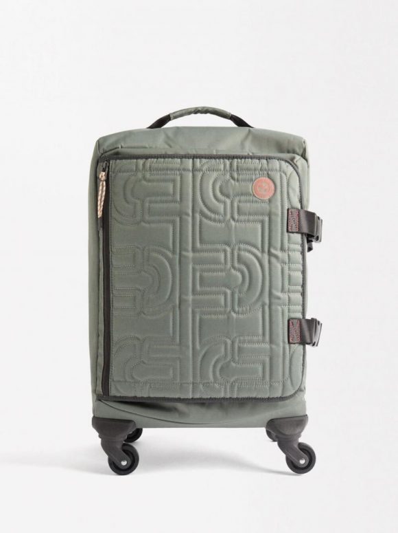 Maleta de viaje de nylon con cuatro ruedas. Asa extensible ergonómica con seguro, que puede esconderse en un compartimento con cierre de cremallera. Bolsillos interiores con cierre y malla. Correas elásticas interiores. Asa superior. Bolsillo frontal con cierre de cremallera. Tiras laterales para ajustar. Se puede llevar a bordo del avión, de acuerdo con las dimensiones permitidas.