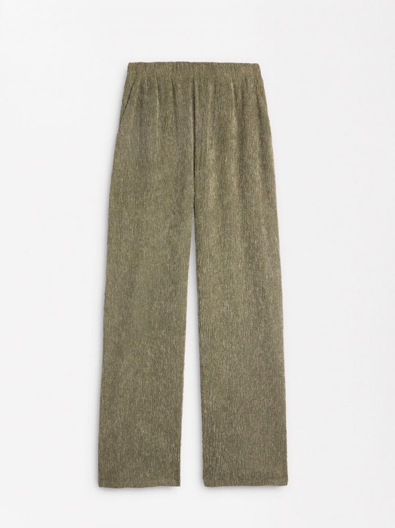 Pantalón con textura y cintura elástica. Corte recto. Bolsillos laterales. La modelo mide 1.78 m y lleva la talla XS-S.