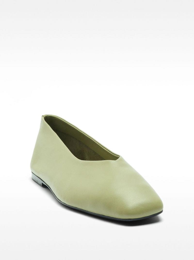 Bailarinas de piel lisa. Plantilla acolchada. Punta cuadrada. Suela de goma. Diseño moderno y elegante.
