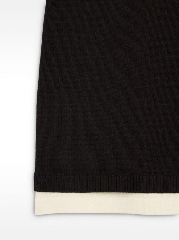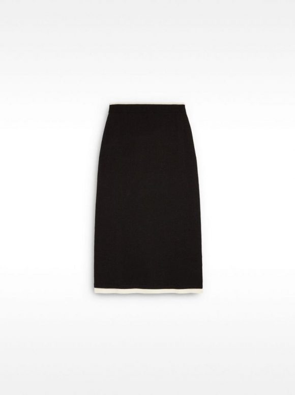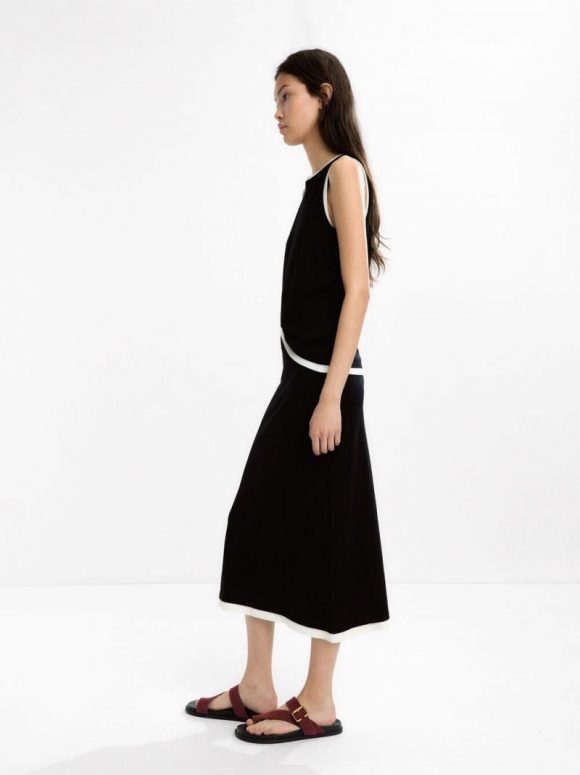 Falda midi de punto con los bordes en color contrastante. Cintura elástica. La modelo mide 1,80 m y lleva una talla XS-S.