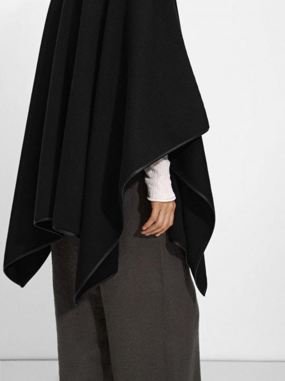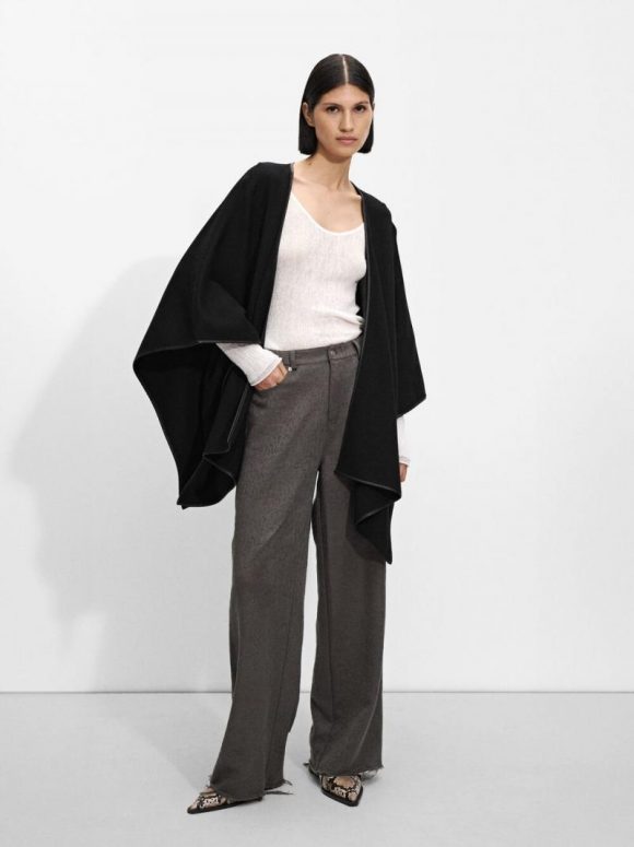 Poncho de punto con detalle de pespuntes en contraste. La modelo mide 1,75 m.