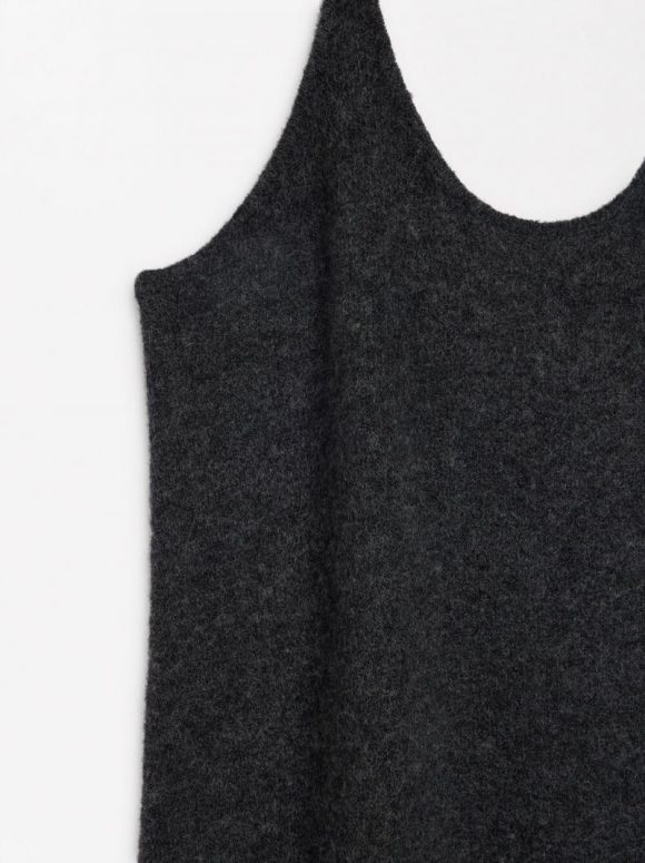 Vestido largo de punto con tirantes. Confeccionado con lana. Cuello redondo. La modelo mide 1,76 m y lleva la talla XS-S.