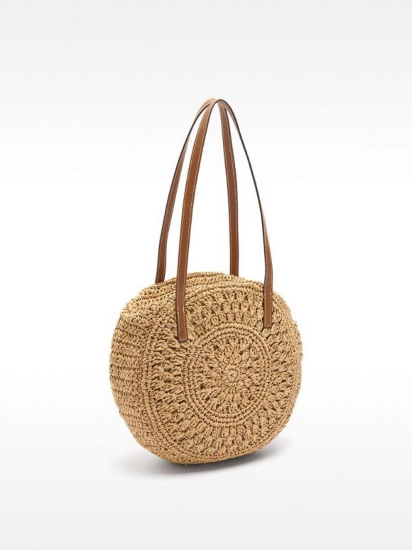 Bolso shopper redondo con efecto rafia. Forro interior. Cierre de cremallera. Asas de hombro fijas dobles.