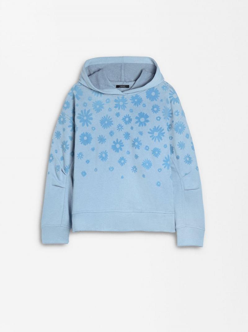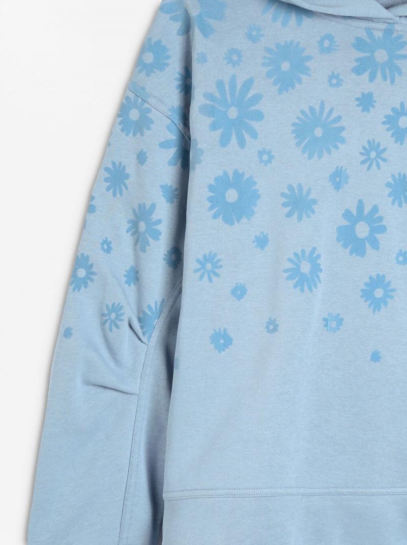 Sudadera con estampado floral y capucha. Manga larga con fruncido. La modelo mide 1,76 m y lleva la talla S.