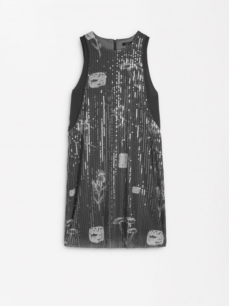 Vestido corto estampado con lentejuelas. Cuello redondo. Sin mangas. Cierre de cremallera en la parte posterior. La modelo mide 1,75 m y lleva la talla S.