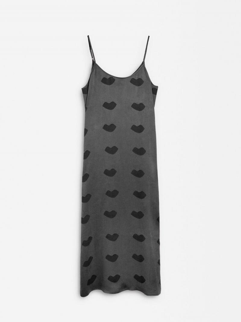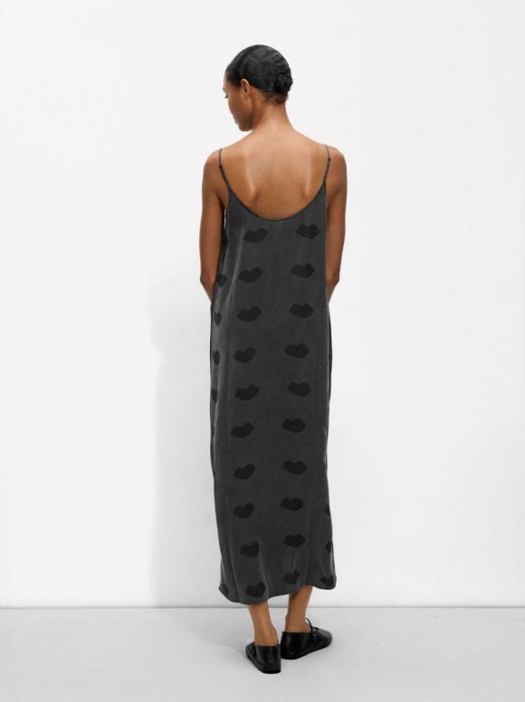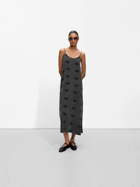 Vestido largo estampado con tirantes. Aberturas inferiores en los laterales. La modelo mide 1,76 m y lleva la talla XS-S.