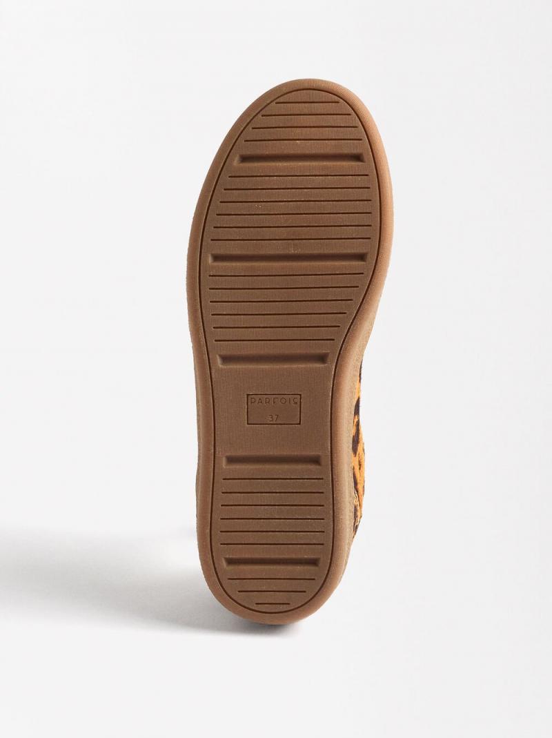Zapatillas deportivas de piel con estampado animal. Cordones, parte trasera e interior del calzado en colores contrastantes. Suela de goma. Recomendamos elegir una talla menor de lo habitual.