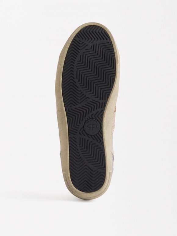 Zapatillas con detalles en colores contrastantes: líneas laterales metalizadas. Talón en dos colores. Cordones en consonancia con el color principal del calzado. Punta redonda. Suela de goma.