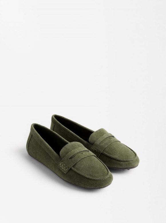 Mocasines suaves de piel con pespuntes. Detalle antifaz en el empeine. Plantilla interior. Puntera redonda. Suela de goma con relieve de puntos.